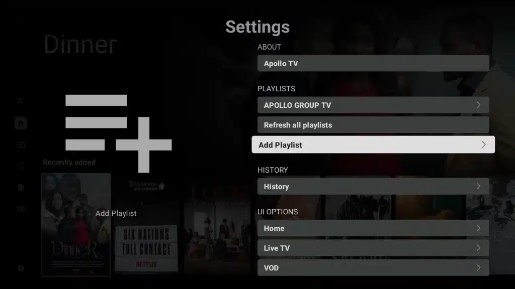Step 5: Click Add Playlist and enter your Apollo Group TV username and password (from the email).